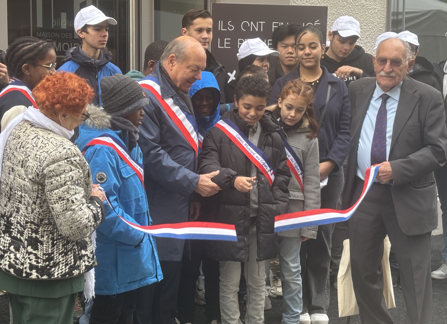 Le 8 novembre 2025, année du 80e anniversaire de la fin de la Seconde Guerre mondiale, la Ville d’Annemasse inaugure la Maison des Mémoires – couper de ruban par le Conseil Municipal des Enfants