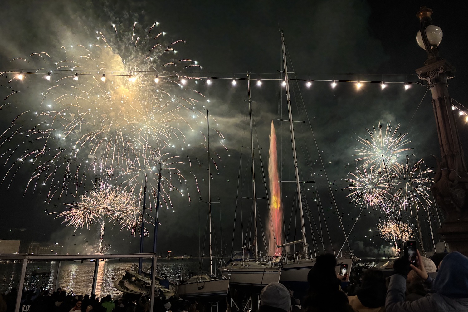 Réveillon à Genève : Le feu d’artifice du 31 décembre 2025 était visible cette année depuis toute la rade, avec un départ devant l’hôtel Fairmont et un autre départ en face de Baby-Plage.