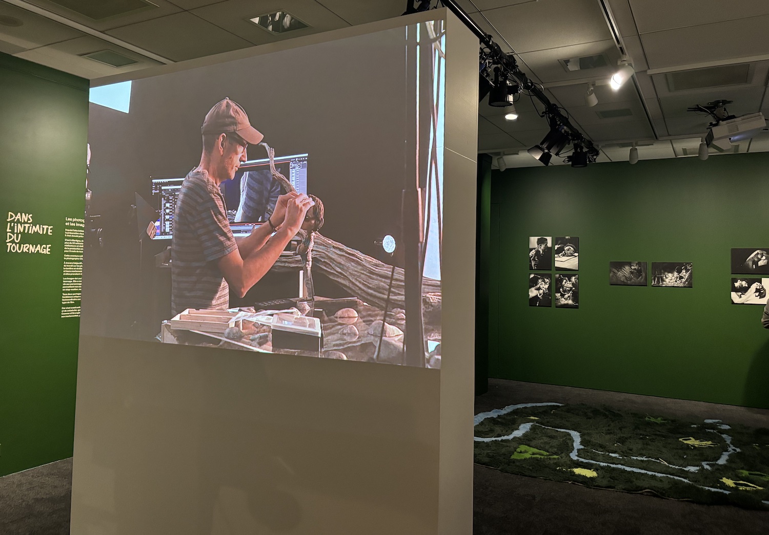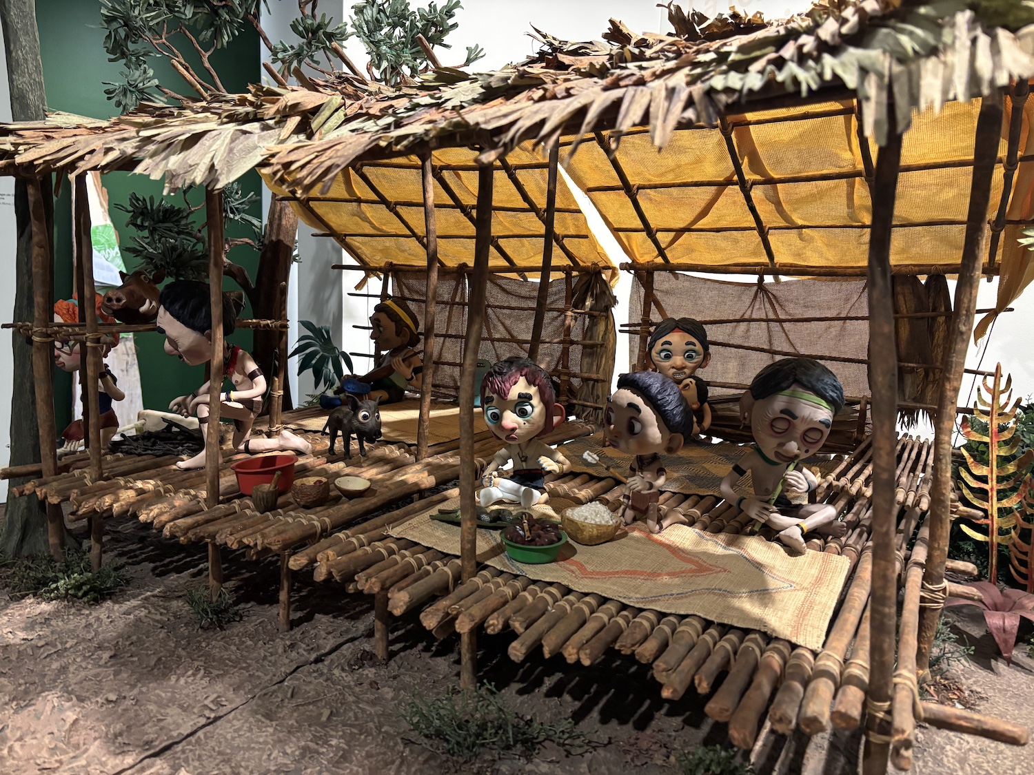 La deuxième partie de l’exposition dévoile la genèse du film d’animation en stop motion, de l’écriture du scénario à la naissance des personnages: marionnettes, accessoires et décors conçus en collaboration avec des artisans Penan. Un plateau interactif permet même au public de tester cette technique image par image. Enfin, les clichés du photographe Claude Dussez et de la cinéaste Léa Favre plongent dans l’atmosphère unique du tournage.