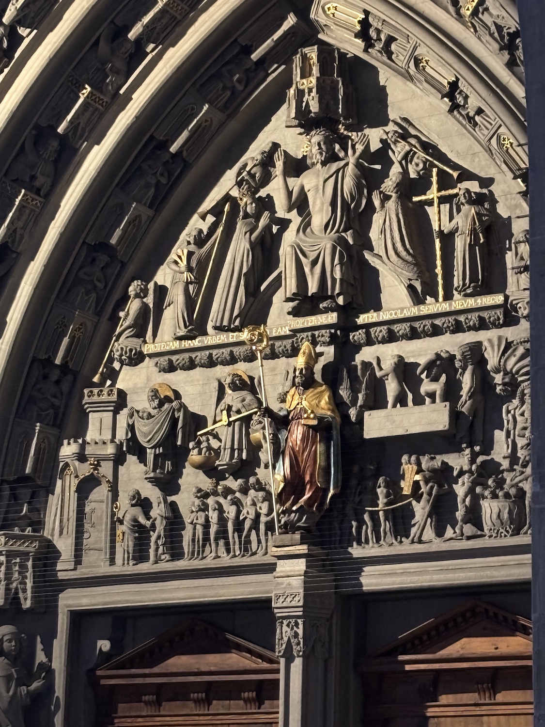 Samedi 6 décembre 2025, le cortège officiel ont attiré plus de 30 000 personnes. Saint Nicolas sur le dos de l’âne Balou, escorté par les pères fouettards et toute sa troupe (ânier, cantor, porte-crosse, boucher), et distribuant des biscômes sur tout le parcours, est descendu à 17 heures depuis le collège St-Michel pour arriver à la cathédrale une heure plus tard et prononcer le fameux discours.