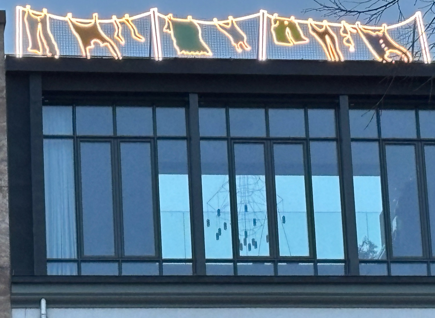 « LIGNE-DE-LINGE » (39, boulevard Georges- Favon), le duo d’artistes RM (Bianca Benenti Oriol et Marco Pezzotta), formé à Genève en 2015, célèbre la vie ordinaire et renverse l’injonction à ne pas exposer la vie intime des foyers en affichant sur la place publique une corde à linge où sèchent des habits colorés.