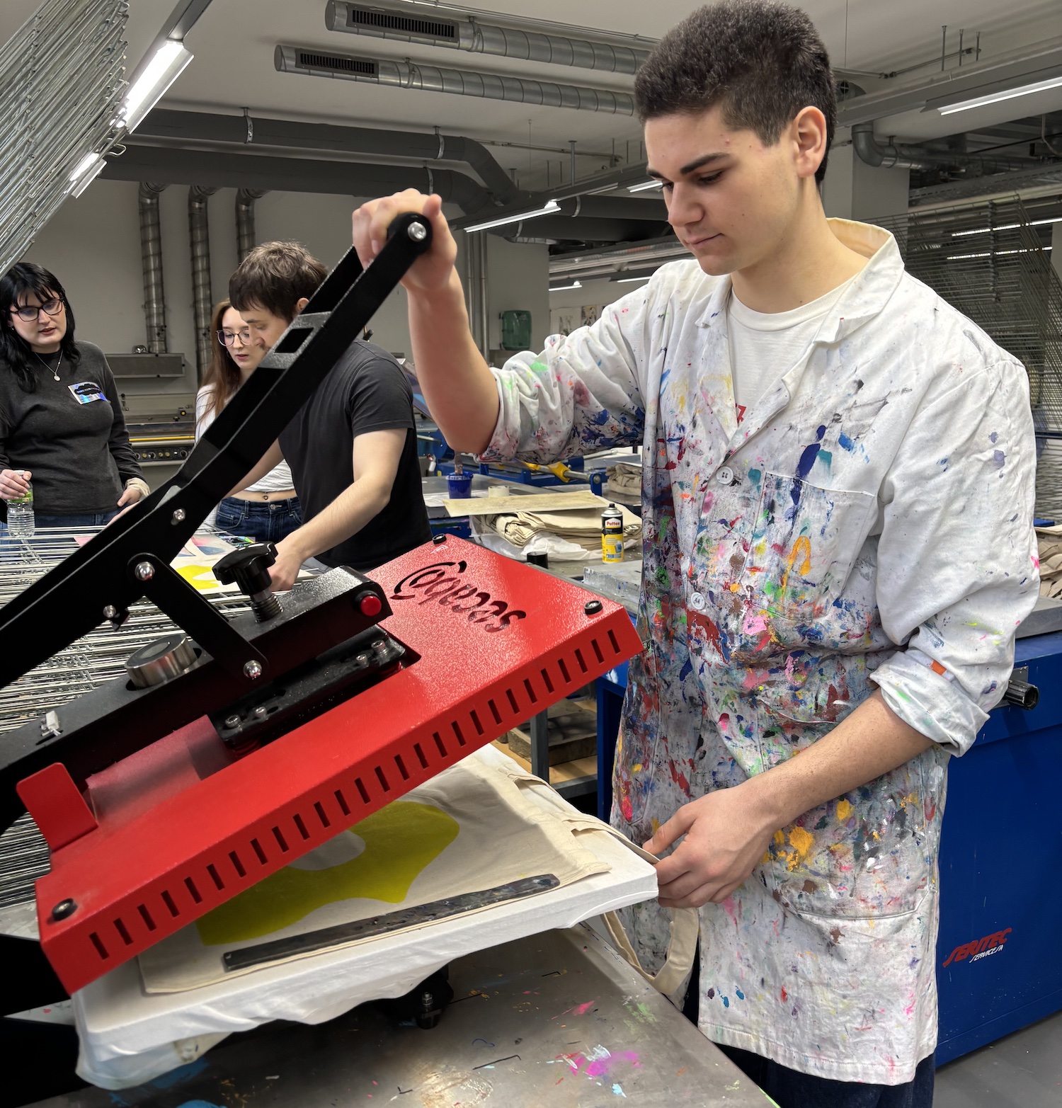 Pool édition et impression au sous-sol, Bâtiment H, Campus HEAD, Châteleine, étudiant en 1re année