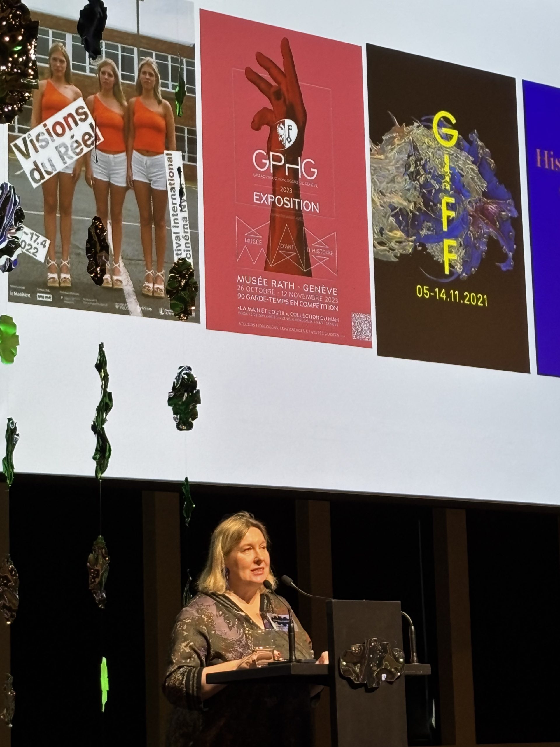 Introduction au CUBE par la directrice de la HEAD Lada Umstätter présentant entre autres toutes les collaborations de l’école avec des acteurs culturels : exposition du Grand Prix de l’Horlogerie de Genève, et des festivals : Vision du Réel, GIFF, Cité de Histoire, etc.