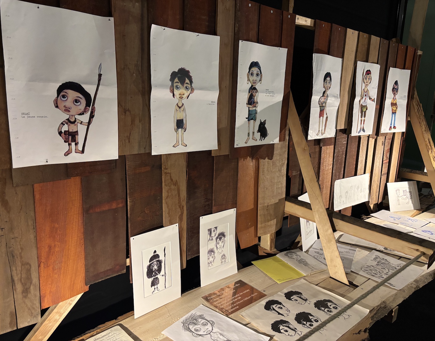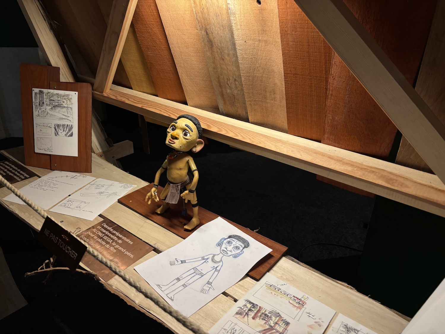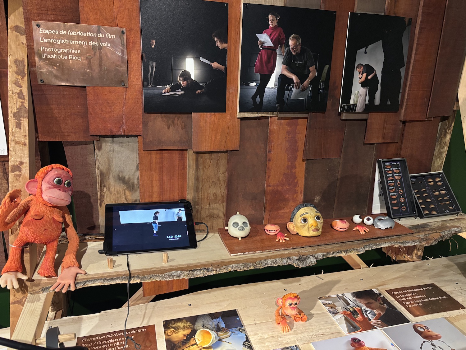 La deuxième partie de l’exposition dévoile la genèse du film d’animation en stop motion, de l’écriture du scénario à la naissance des personnages: marionnettes, accessoires et décors conçus en collaboration avec des artisans Penan. Un plateau interactif permet même au public de tester cette technique image par image. Enfin, les clichés du photographe Claude Dussez et de la cinéaste Léa Favre plongent dans l’atmosphère unique du tournage.