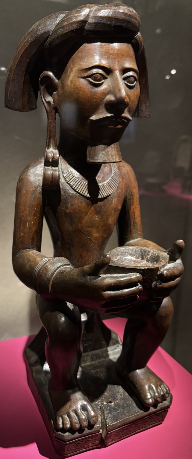Le visiteur est accueilli par l’effigie d’ancêtre, une statuette de l’île de Nias en Indonésie. « adu siraha salawa » était utilisé pour protéger la maison d’un chef de village.