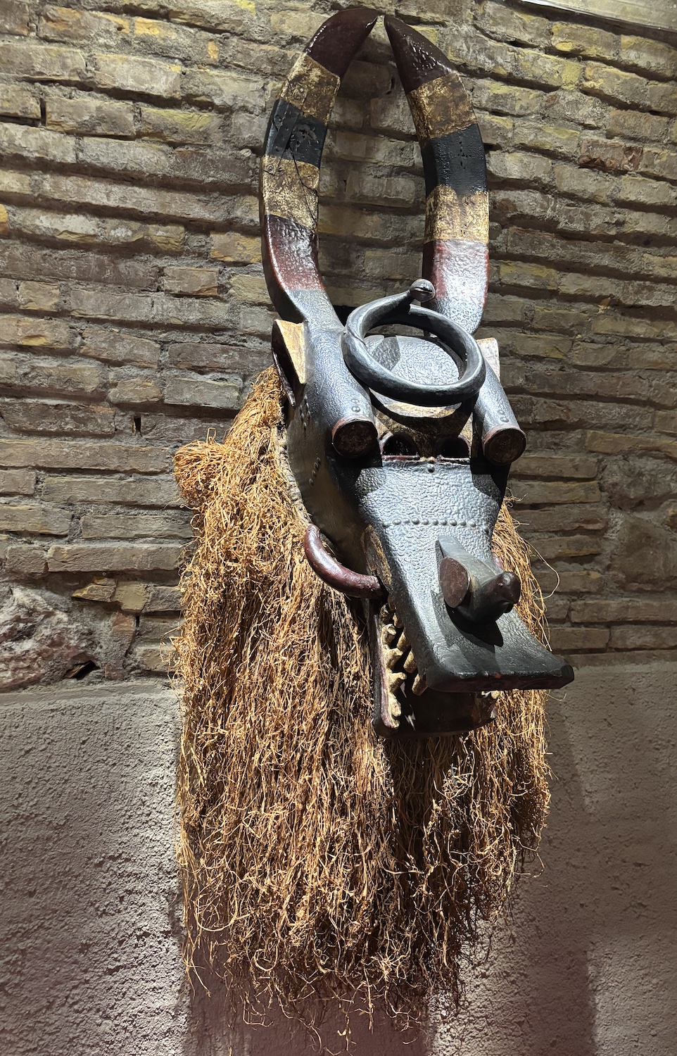 Masques de célébrations dansés au sous-sol. Les Fanti du Ghana, bois, clous, fibres végétales qui combine les formes de plusieurs animaux, phacochère, antilope, bovin, serpent et oiseau.