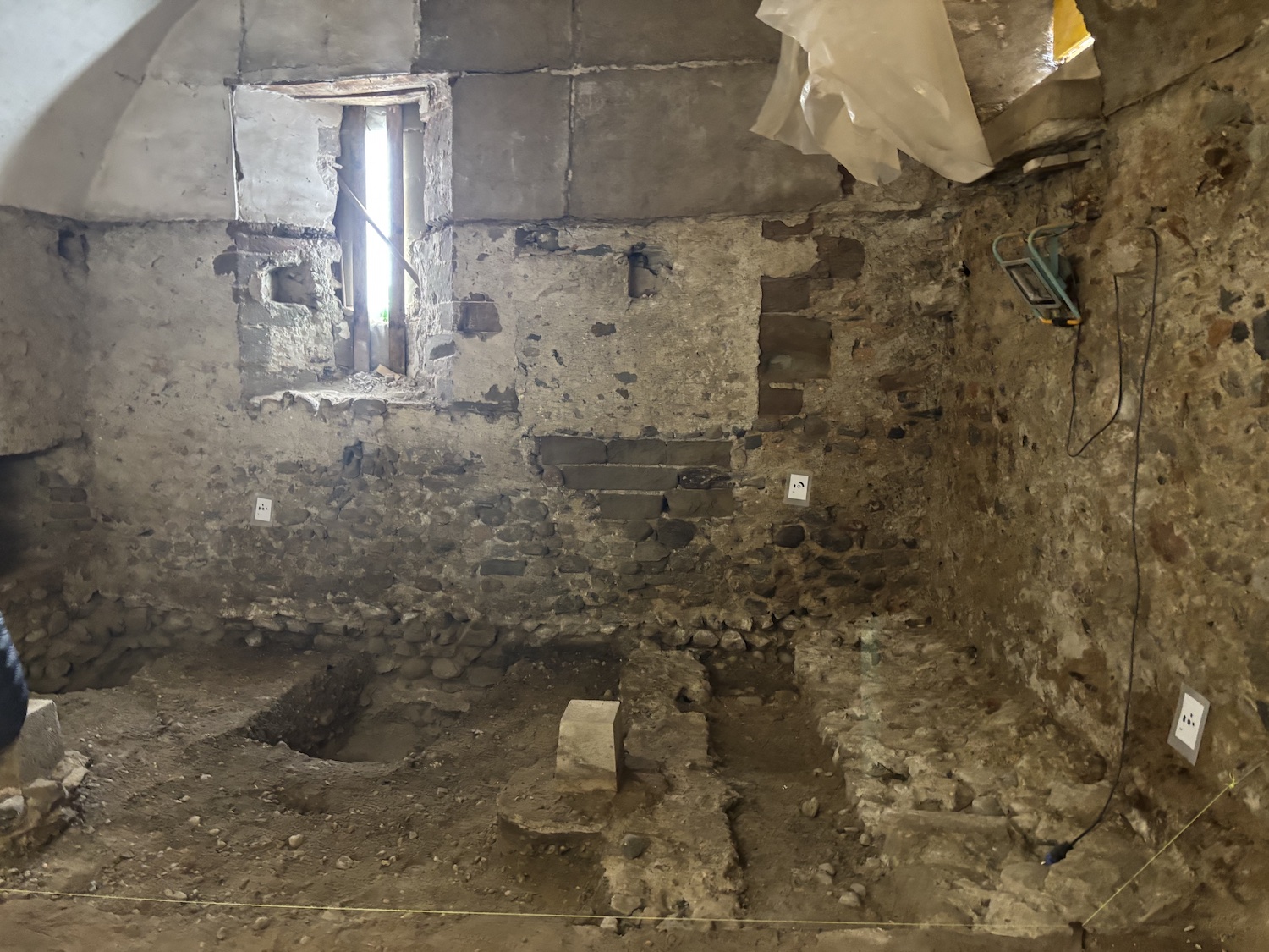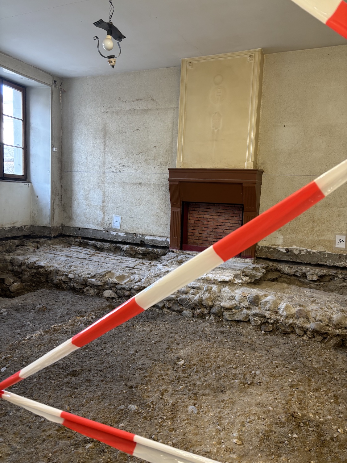 Au rez-de-chaussée, les futurs bureaux de la fondation – la canalisation du moyen âge va permettre d’y mettre les installations techniques.